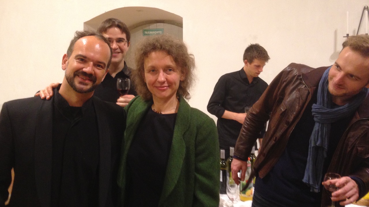 Konzert des Ensemble Boswil am 11.10. in Lugano. Applaus nach "Ensemble-Buch I" von Rudolf Kelterborn. (vorne: Robert Koller und Christian Schumann)
